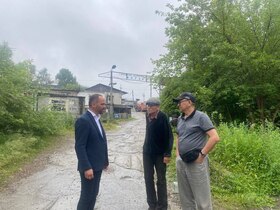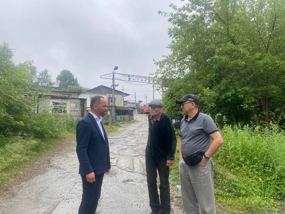 По инициативе активиста нашего района, Владимира Александровича Донского, встретился с представителями гаражного кооператива №227 в районе Помяловского, которые обратились с просьбой помочь в ремонте дороги, ведущей к кооперативам №227 и №18. За пять лет моей депутатской работы обращений от членов кооперативов не поступало — люди решали проблему самостоятельно. Но в последние годы было много дождей, дорогу совсем размыло, нужна отсыпка. Кроме того, возникла проблема с проходящей под дорогой трубой водоотведения: ее требуется очистить и вернуть в рабочее состояние. Выехали на место, определили, что необходимо для приведения этого участка дороги в порядок. Задача максимум — сделать здесь асфальтовое покрытие. На этот участок в 150 метров потребуется порядка 2 млн рублей, найдем возможность заложить финансирование из депутатского фонда в течение 2-3 лет. В этом году есть возможность организовать доставку песчано-гравийной смеси и выделить фронтальный погрузчик для выравнивания поверхности. Задача взята на контроль.